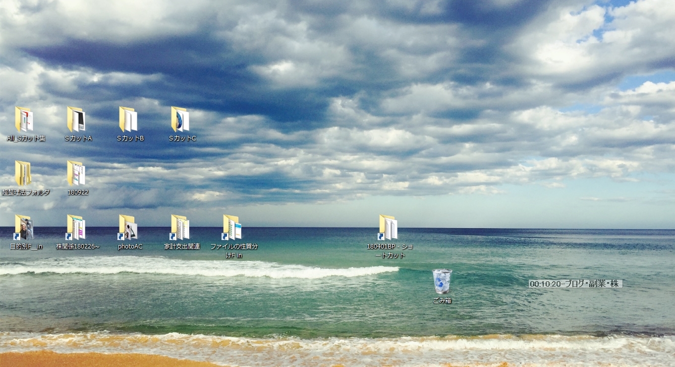こうする前はもうゴチャゴチャのデスクトップ画面でしたし、どこに何のファイルがあるのか????☆???△△?XXXX△???な状態でした。