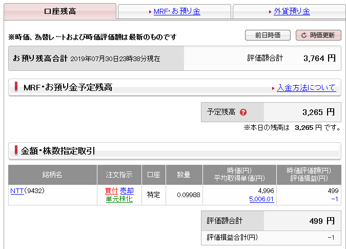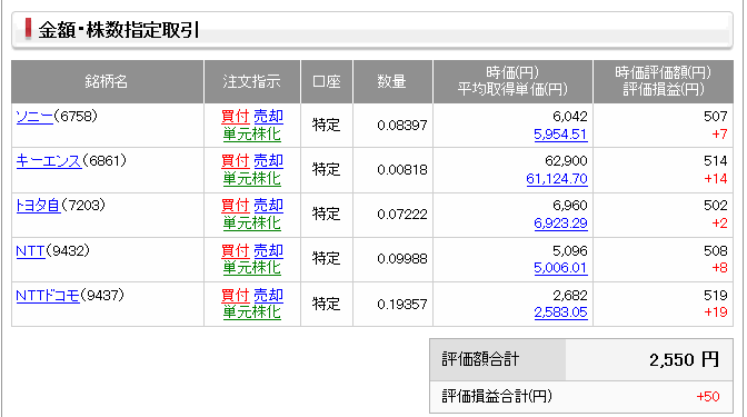 投下資金はキンカブで買い付ける際の最低金額の500円です。