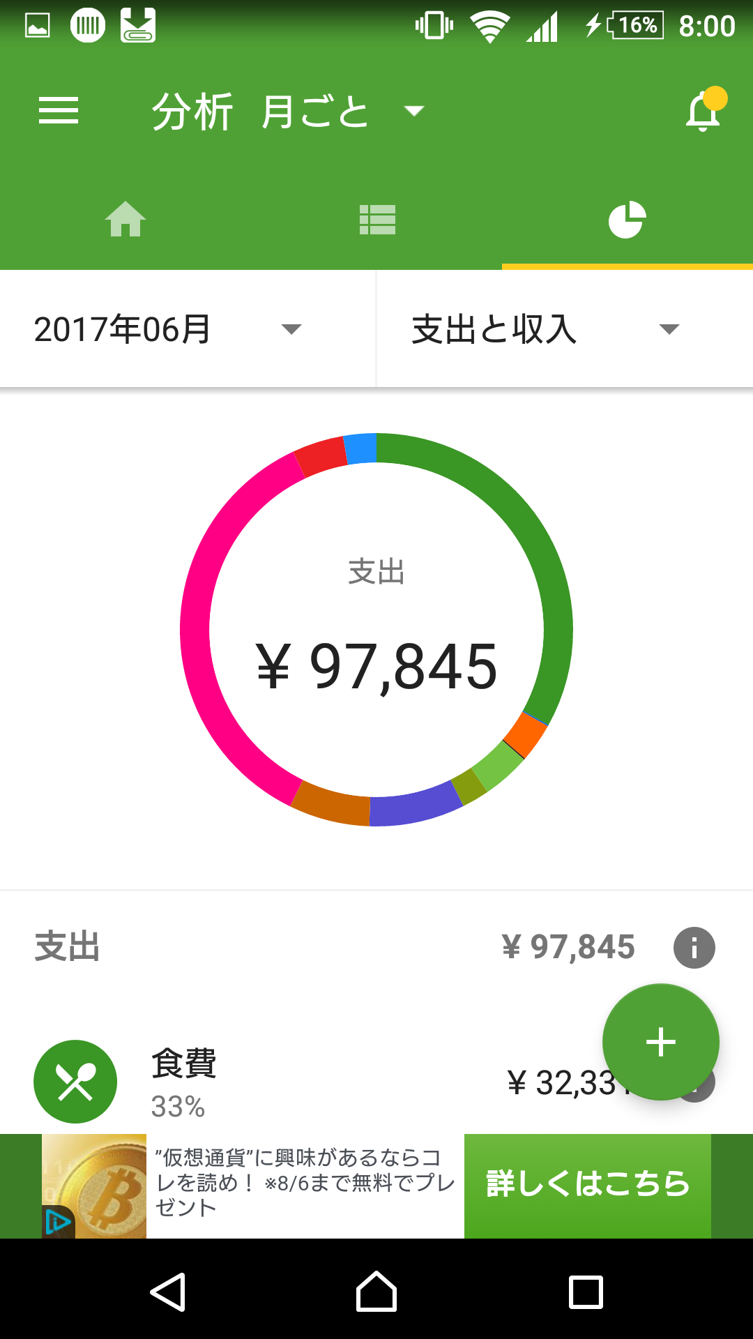6月はやっとこ予算内の97,845円の支出に収まりました。電気料金の引き落としが2-5月期引き落とし分は暖房がエアコンメインだったせいか7,737円と高額になっていたんですがそれが≒2,000円に収まった事、この月からダイエットのために運動の機会を若干多めに設けたのを機に完全禁煙を始めたのでタバコ代が0円になったこと(普段の喫煙ペースから見て≒5,000円弱は節約出来てる)、突発的な出費がなかった事などが理由としてあげられます。