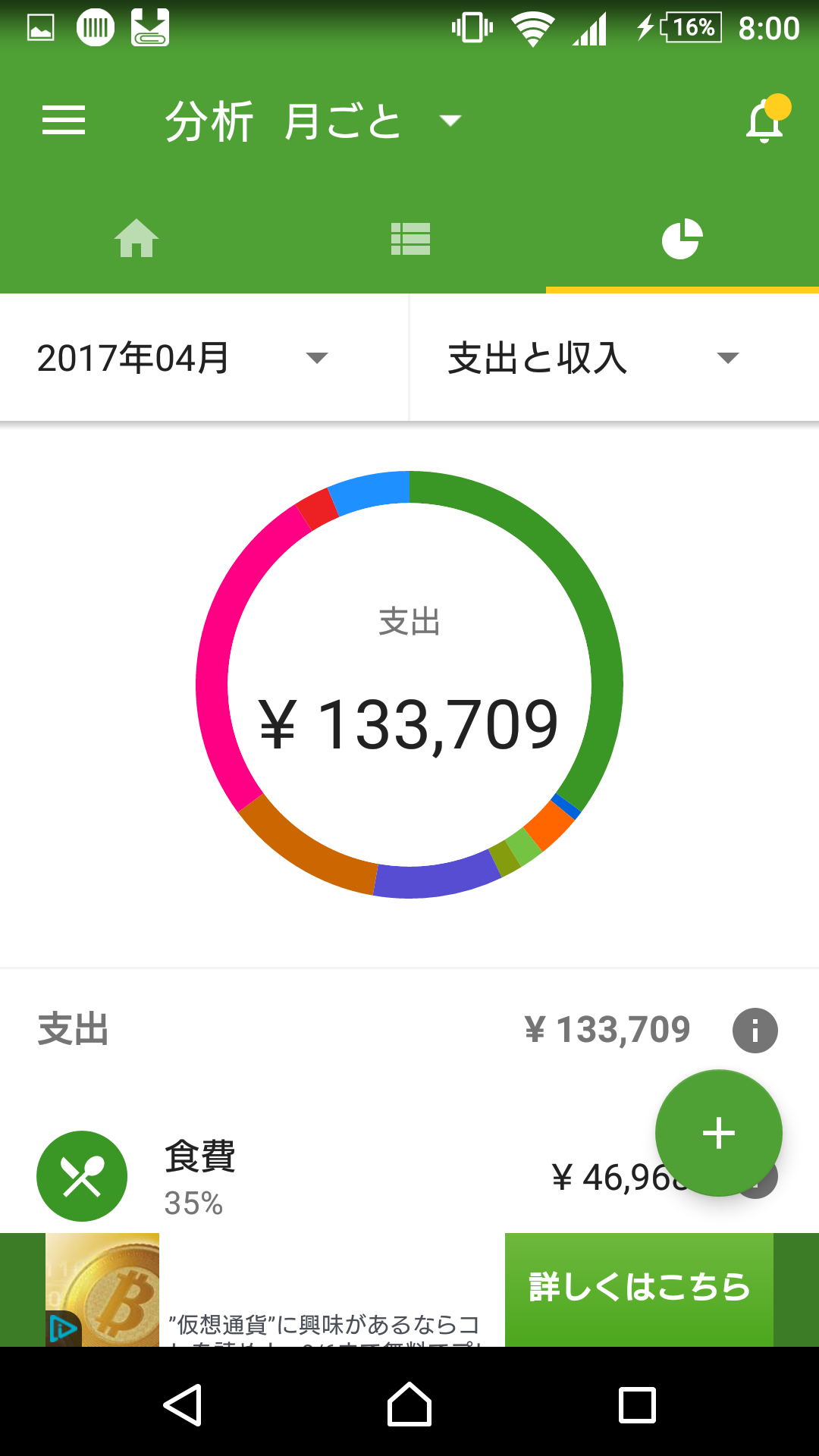 4月は133,709円、これまた予算11,429円をオーバーしてますが突発的な出費は何もなし。そういう方が問題なのかも、、、余談ですがこの頃に除々に進行していた肥満がMAXになり、Lサイズのズボンを2着合計≒2,500円買い足してます。(上はMサイズが着れる)
