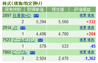 株式の時価評価は大体3万3千円程度、少ない。