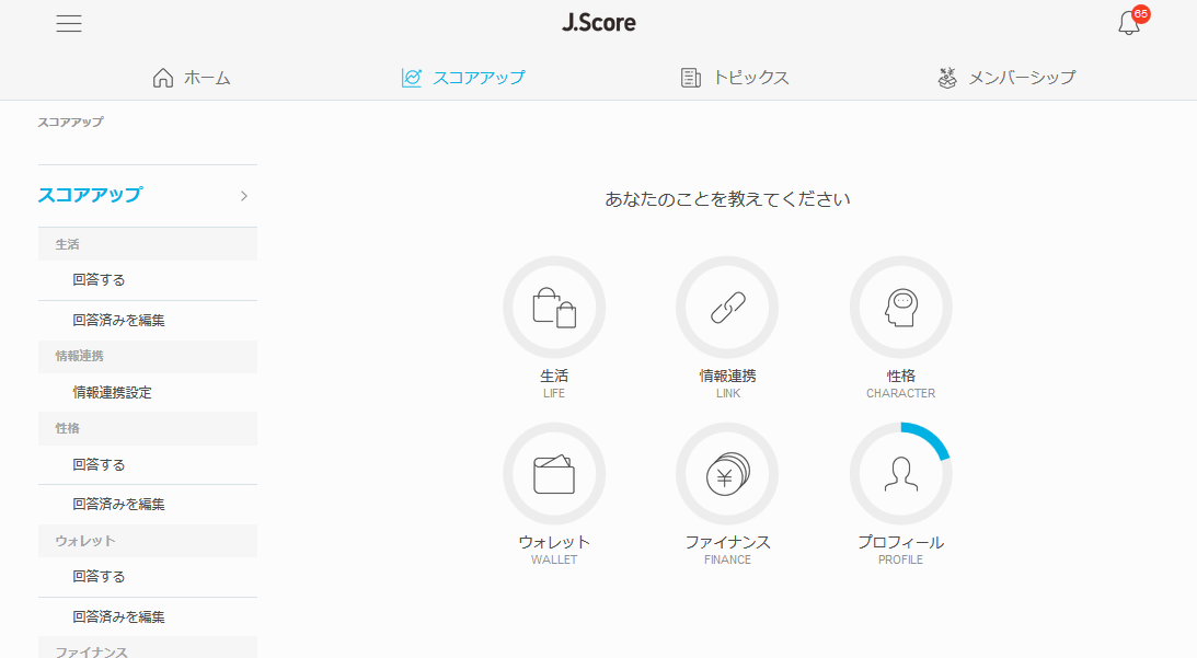 最初の内は色んな私的情報をガンガン入力する事でスコアを上げていけるようです。