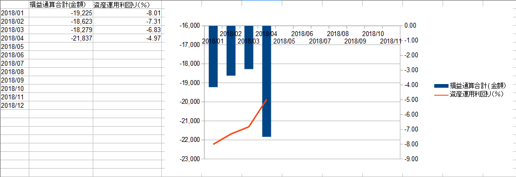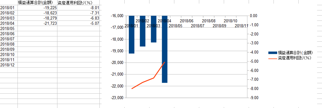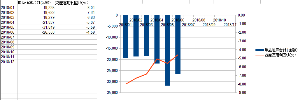 資産運用利回りは前月と同じ△5%台なんですが、コンマ以下の数字が悪化(具体的にはコンマ52ポイントの下落)
