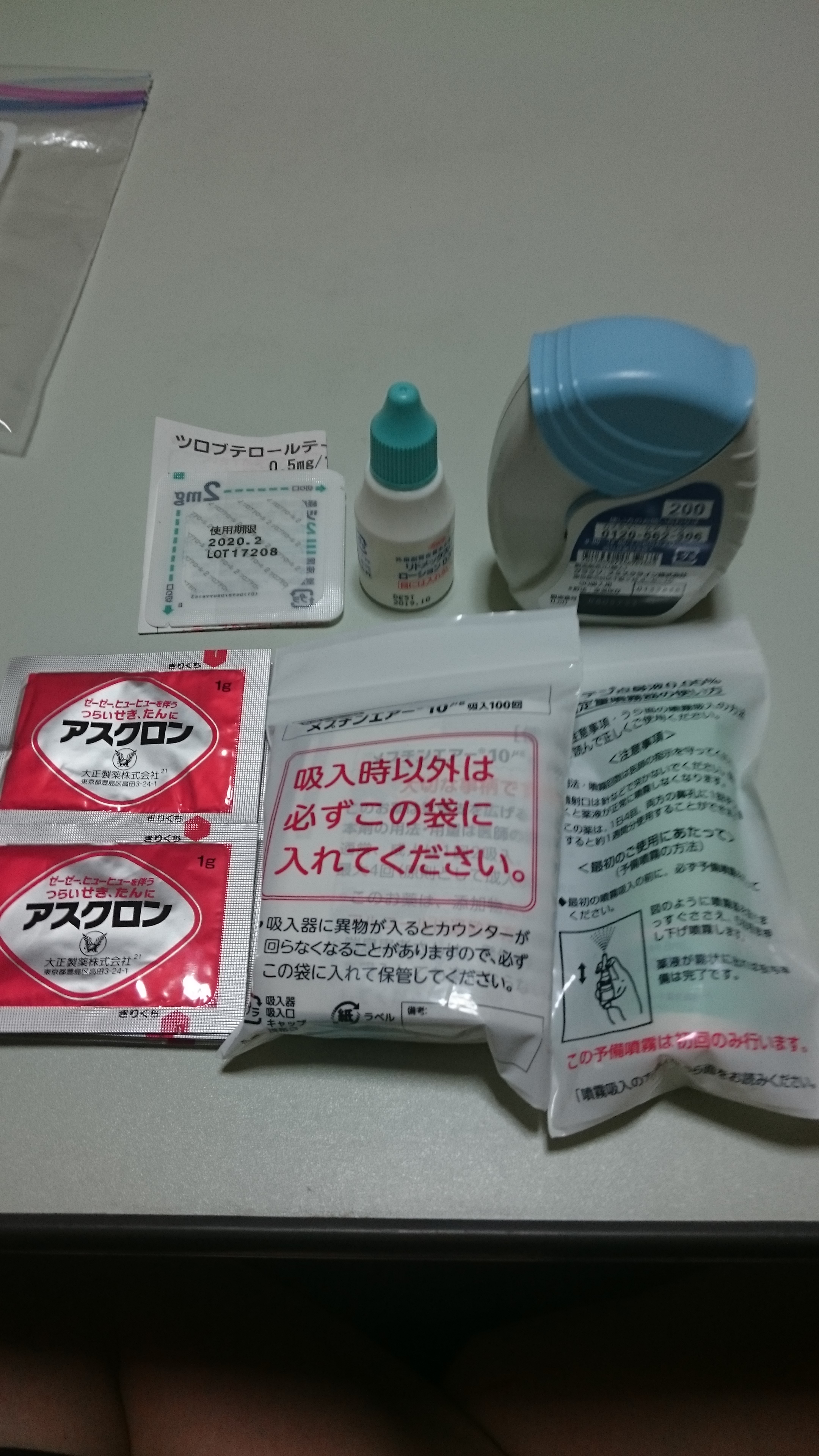 今回メインの持病の薬を晒さなかったのは、日常的に服用する薬なのでもうジップロックから出しちゃってて、ジップロックに入れっぱなしだったこっち(喘息関係の薬)でいいかーというだけの理由です。